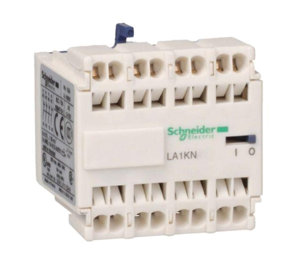 Блок доп. контактов 2НО+2НЗ пружинный зажим SchE LA1KN223 — модуль расширения для электромагнитных контакторов и пускателей, предоставляющий дополнительные контактные группы. Позволяет подключить больше устройств управления и сигнализации без замены базового аппарата.