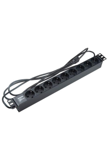 Блок розеток 9-м 10А SHE19-9SH-2.5IEC 250В 3х1кв.мм 482.6х44.4х44.4мм для 19дюйм горизонт. Schuko с вилкой IEC320 C14 шнур 2.5м Hyperline 397068