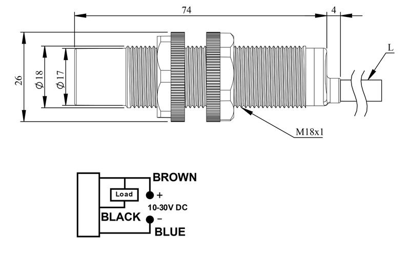 Датчик емкостный (NPN-НЗ) кабель 2мх3 (расс. сраб. 2-10мм) выступающий пластик 10-30В DC IP65 EMAS SCM18NP1OC2