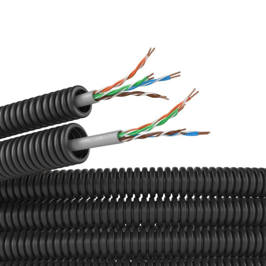 Электротруба ПНД гибкая гофрированная d16мм с кабелем витая пара 5EU/UTP нг(А)-HF (уп.50м) черн. DKC 7EU71650B