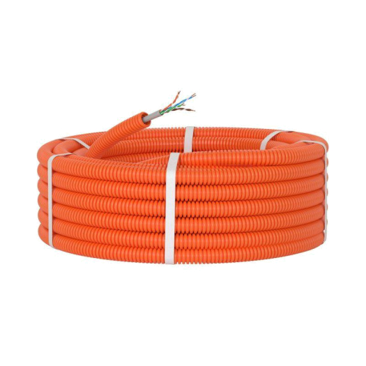 Электротруба ПНД гибкая гофрированная d16мм с кабелем витая пара 5EU/UTP нг(А)-HF (уп.50м) оранж. DKC 7EU91650
