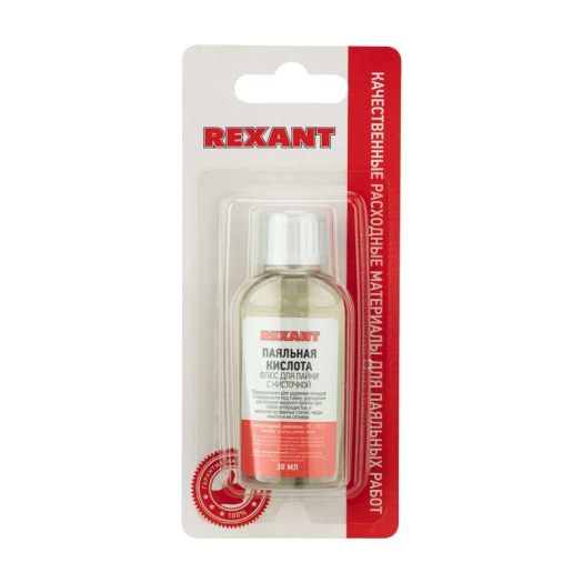 Флюс для пайки ПАЯЛЬНАЯ КИСЛОТА 30 мл с кисточкой флакон блистер Rexant 09-3613-1