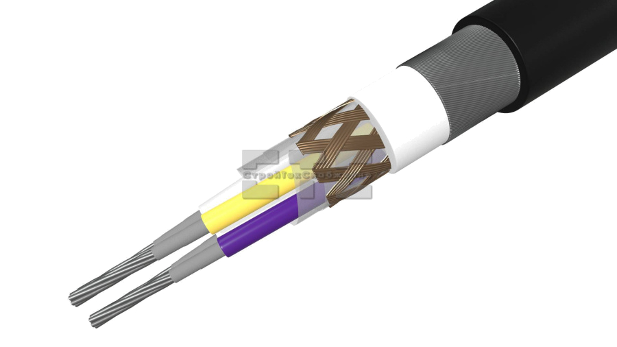- Каждая пара витков имеет отдельный оплеточный экран, выполненный из луженых медных проволок.