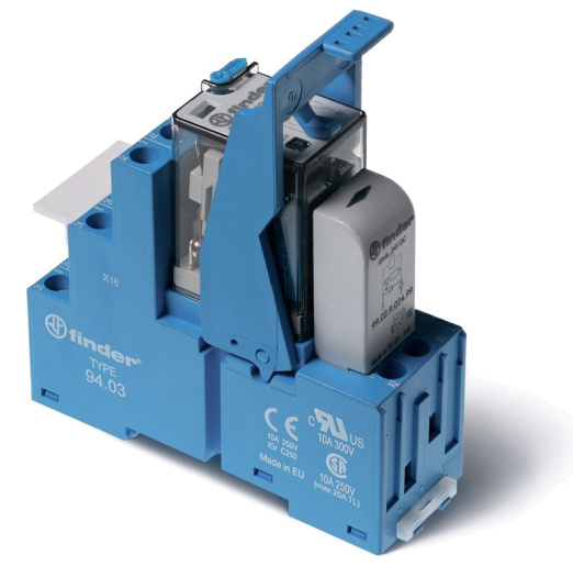 Модуль интерфейсный (сборка 55.33.8.120.0010 + 99.02.0.230.98 + 94.03SMA) электромеханич. реле 3CO 10А AgNi 120В AC IP20 винт. клеммы металлич. клипса LED + варистор FINDER 583381200060SMA