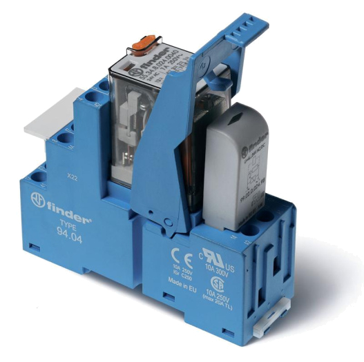 Модуль интерфейсный (сборка 55.34.9.024.0040 + 99.02.9.024.99 + 94.04SPA) электромеханич. реле 4CO 7А AgNi 24В DC IP20 винт. клеммы пластик. клипса LED + диод FINDER 583490240050SPA