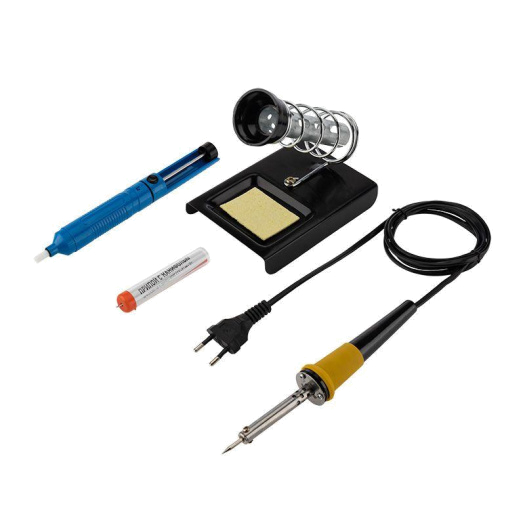 Набор для пайки (паяльник 30 Вт оловоотсос подставка припой) Rexant 12-0163