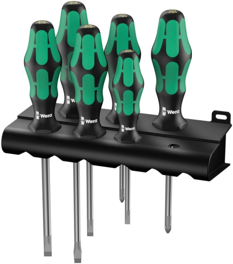 Набор отверток 334/6 Rack Kraftform Plus Lasertip 6 предметов (PH 1х80/2х100; SL 0.5х3.0х80/0.8х4.0х100/1.0х5.5х125/1.2х6.5х150) Wera WE-105650