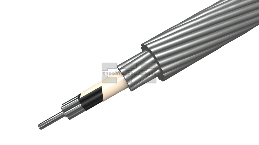 - Сердечник поверх скручен алюминиевыми токопроводящими проволоками, которые имеют диаметр от 1.5 до 4.7мм