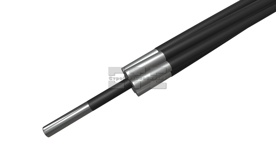 - Сердечник поверх скручен сталеалюминиевыми токопроводящими проволоками, которые имеют диаметр от 1.5 до 4.7мм с количеством повива от 1 до 4