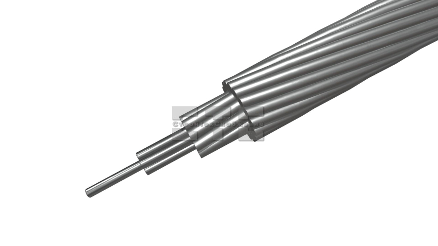 - Сердечник поверх скручен сталеалюминиевыми токопроводящими проволоками, которые имеют диаметр от 1.5 до 4.7мм с количеством повива от 1 до 4