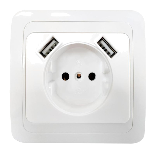 Розетка 1-м Classico 2047 IP20 с заземл. с 2-мя USB бел. IN HOME 4690612035246