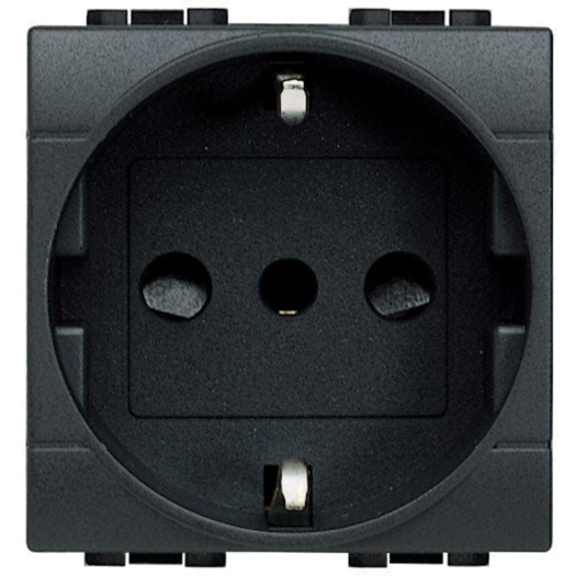 Розетка 1-м СП 2мод. 16А IP20 2P+E с центр. и боков. заземл. защ. шторки антрацит Leg BTC L4140