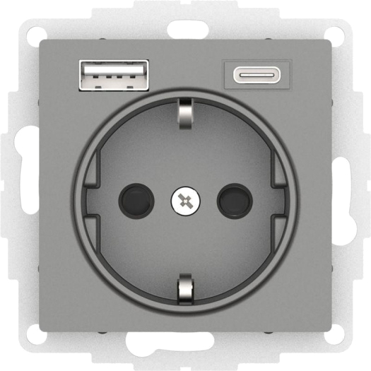 Розетка 1-м СП AtlasDesign 16А IP20 с 2-мя заряд. устройствами USB тип A+C механизм сталь SE ATN000932