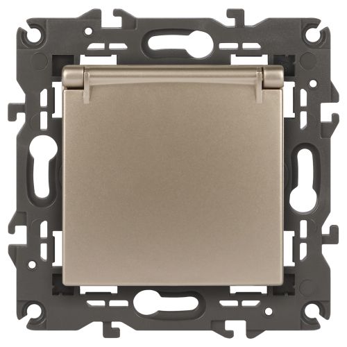 Розетка 1-м СП Эра Elegance 14-2103-04 16А IP20 16AX 250В 2P+E Schuko защ. шторки с крышкой шампань Эра Б0034281