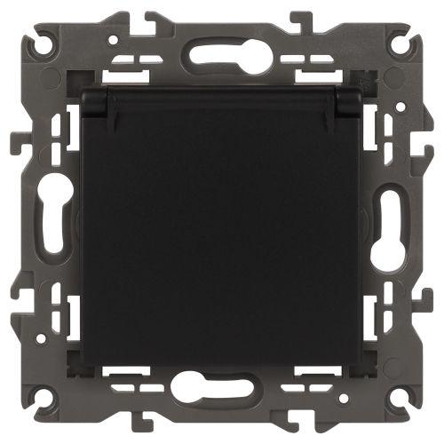 Розетка 1-м СП Эра Elegance 14-2103-05 16А IP20 16AX 250В 2P+E Schuko защ. шторки с крышкой антрацит Эра Б0034282