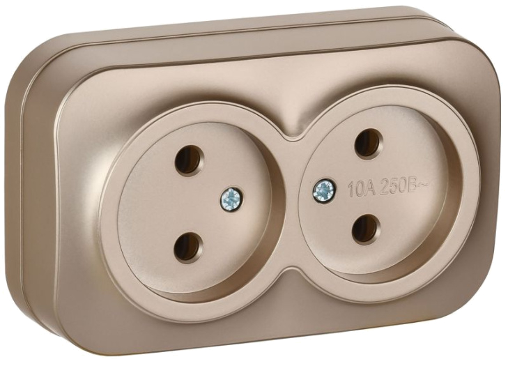 Розетка 2-м ОП GLORY РС22-2-ХШм 10А без заземл. без защ. шторок шампань матов. IEK ERH20-K37M-10