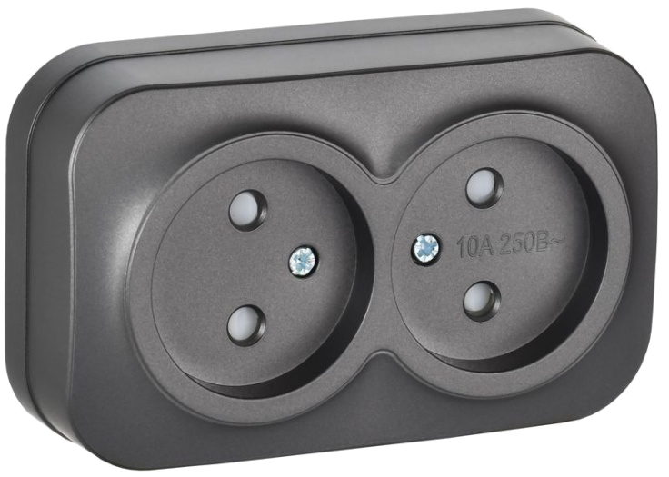 Розетка 2-м ОП GLORY РСш22-2-ХСм 10А без заземл. защ. шторки сталь матов. IEK ERH23-K46M-10