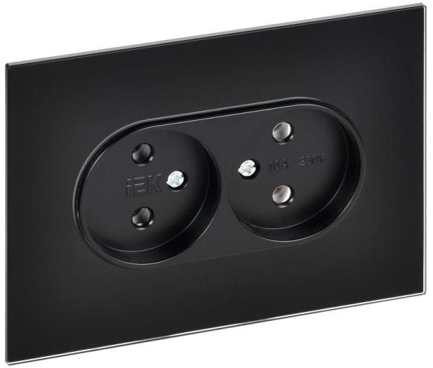 Розетка 2-м SKANDY 10А без заземл. без защ. шторок для плоской вилки SK-R03Bl черн. IEK SK-R20-10-K02