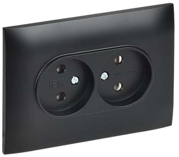 Розетка 2-м SKANDY 10А без заземл. без защ. шторок в сборе SK-R10Bl черн. IEK SK-R20-10-K02-F