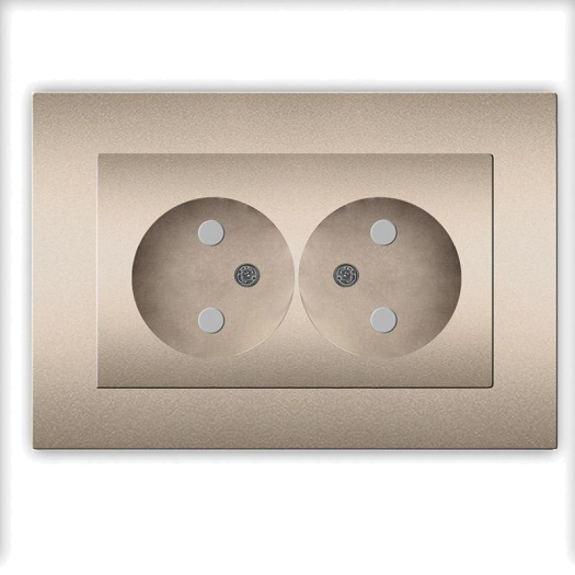 Розетка 2-м СП Афина 16А IP20 без заземл. защ. шторки в сборе шампань Universal A0048-Br