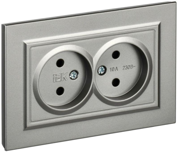 Розетка 2-м СП BRITE РС12-2-БрС 10А в сборе без заземл. без защ. шторок сталь IEK BR-R20-10-K46-F