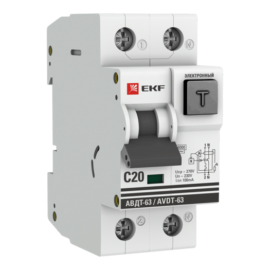 Выключатель автоматический дифференциального тока 20А 100мА тип AC 6кА АВДТ-63 электрон. PROxima EKF DA63-20-100e-AC — предназначен для защиты электрических цепей от перегрузок и коротких замыканий. Обеспечивает быстрое отключение питания при возникновении аварийных ситуаций, предотвращая повреждение оборудования и проводки.