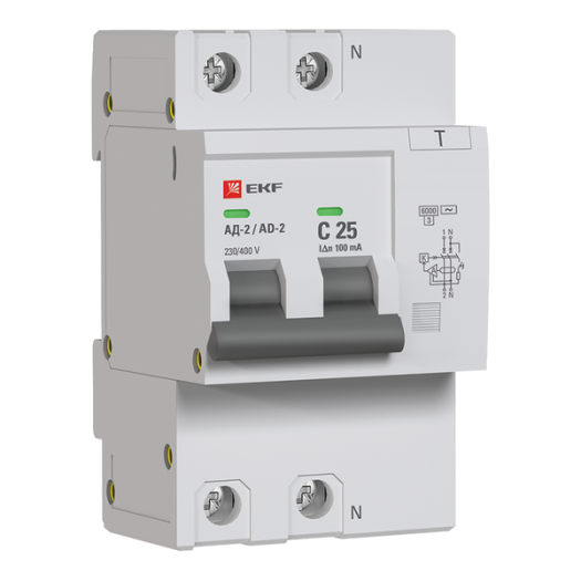 Выключатель автоматический дифференциального тока C 25А 100мА тип AC 6кА АД-2 (электрон.) защита 270В PROxima EKF DA2-6-25-100-pro — предназначен для защиты электрических цепей от перегрузок и коротких замыканий. Обеспечивает быстрое отключение питания при возникновении аварийных ситуаций, предотвращая повреждение оборудования и проводки.